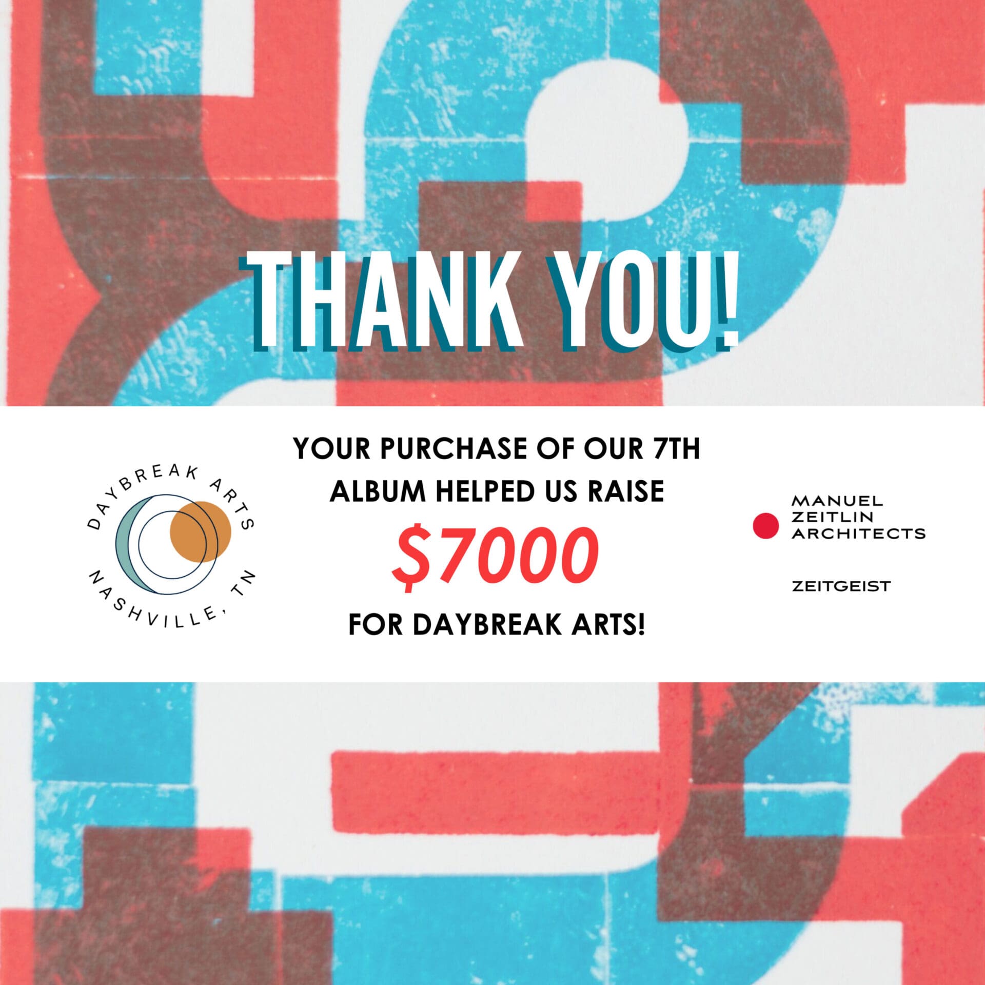 Thank you to everyone who purchased our seventh album! Because of your generosity, we're able to send $7,000 to Daybreak ...