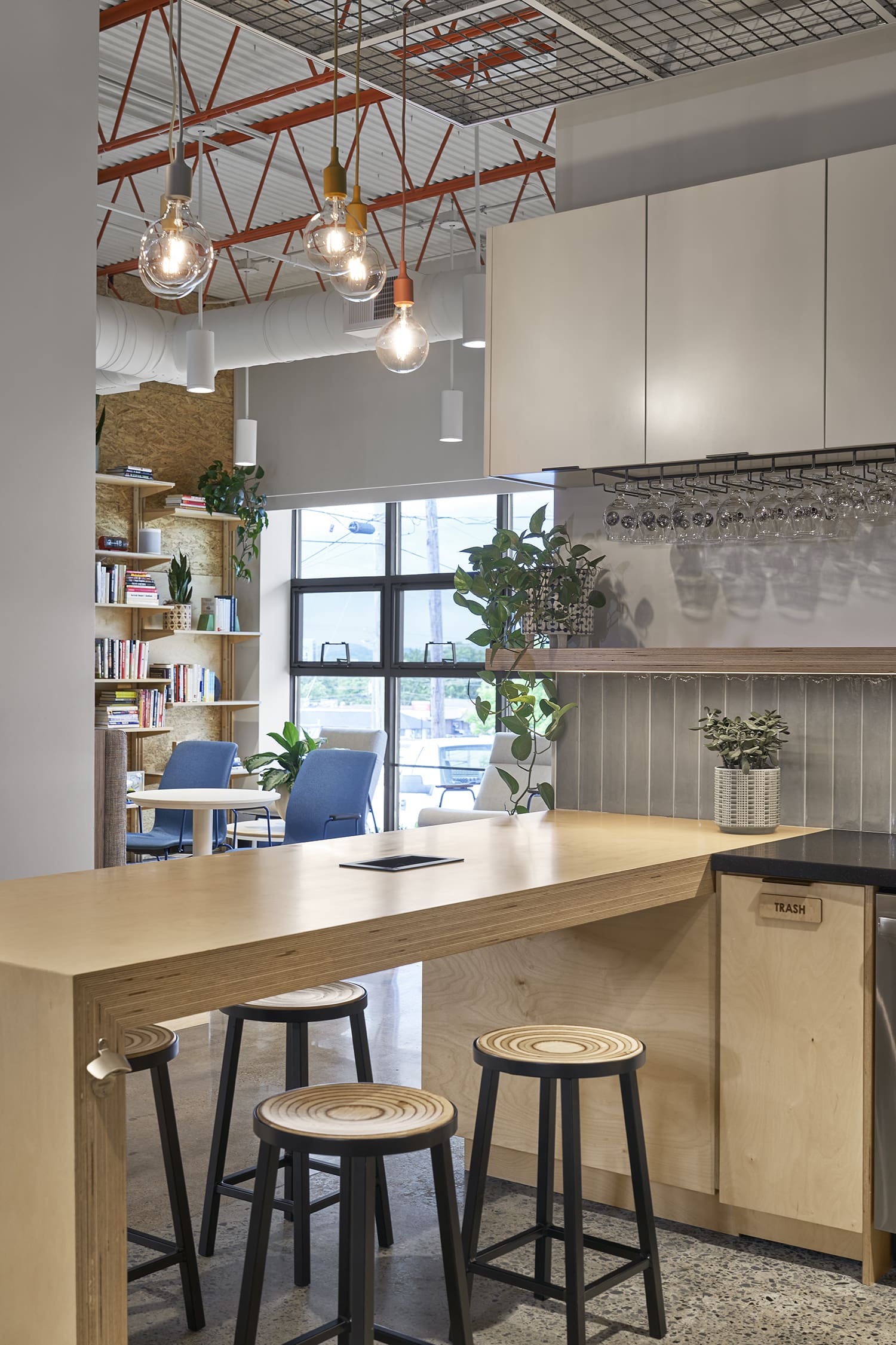 When A.Ray Hospitality needed a new headquarters, MZA transformed their warehouse into an inspired, people-focused space reflecting the company's playful personality and communal mindset. Famous for beloved Nashville haunts like M.L. Rose and Von Elrod's, A.Ray wanted an atmosphere that could easily shift from productivity to celebration. MZA introduced expansive openings to natural light, glass block partitions, and a Nanawall conference room that flows out into community spaces. The space includes open and single offices, a large flex space, phone booths, and a snack bar as a nod to their restaurant roots. It also encourages casual collisions and versatile work styles, all under a clean, modern aesthetic. The result is a building with abundant open space, flexible meeting spaces and a personality-driven palette, creating the office that represents the ideals of A.Ray's "un-restaurant" philosophy.