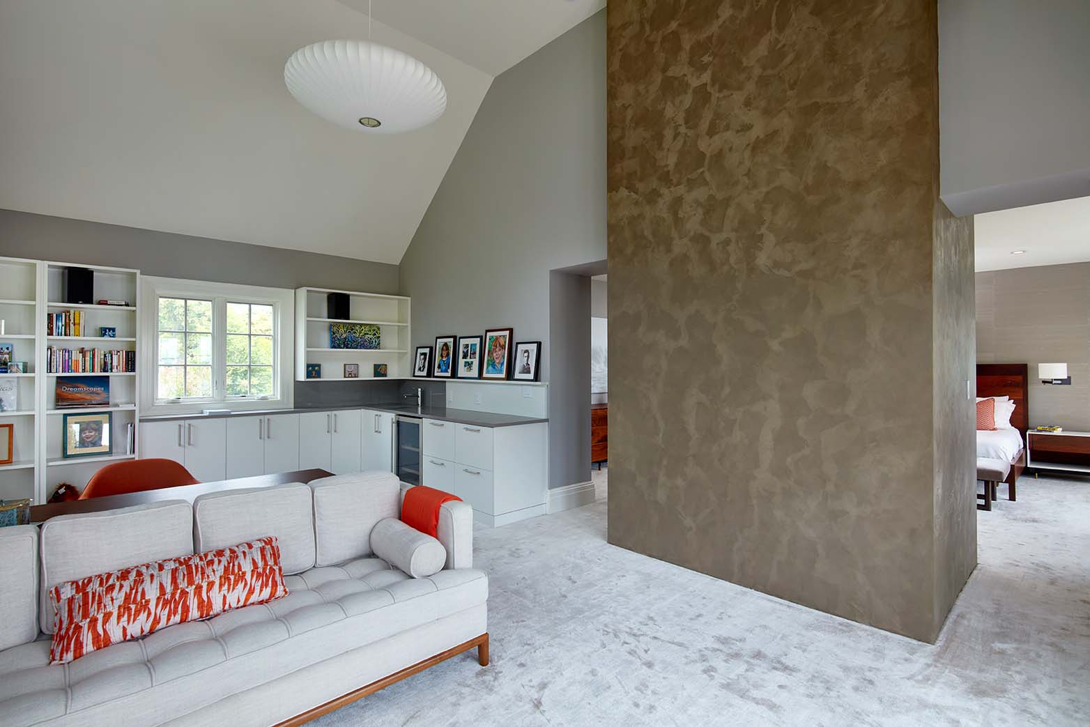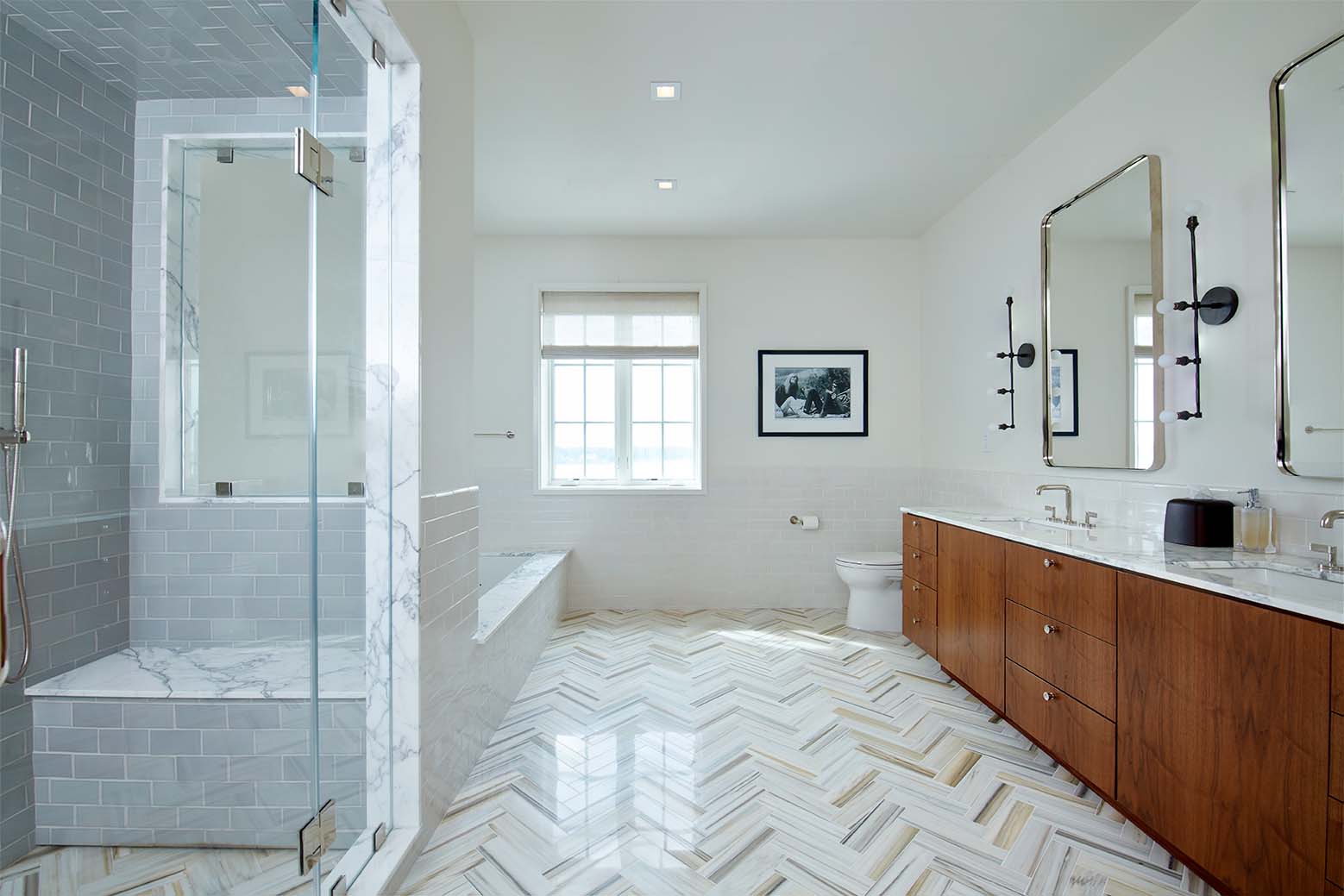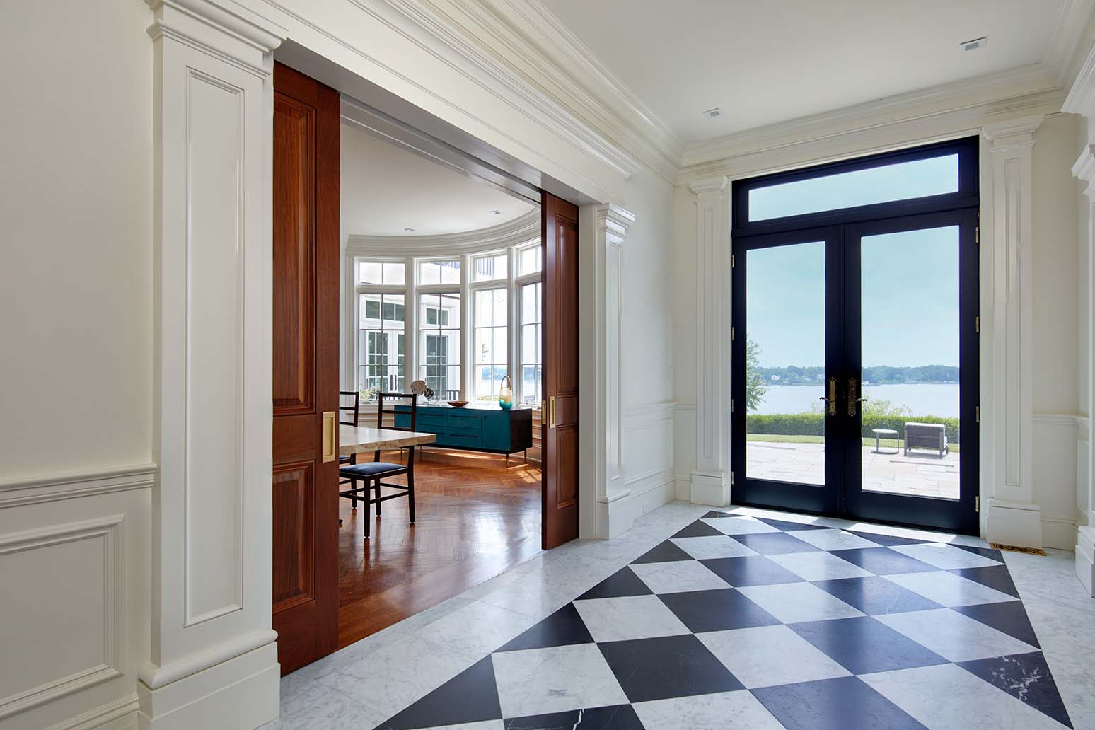 MZA converted Holly House, a 1915 riverfront residence in Middletown, NJ, into a cutting-edge contemporary haven. The homeowners wanted a home that better reflected their modern tastes yet continued to honor the historic charm of the house. MZA redesigned the kitchen for greater functionality, transformed the basement into a wellness and entertainment area, and redesigned the 1,500-square-foot master suite to include a sitting room, office, and roof deck with breathtaking views of the Navesink River. The most adventurous addition was a brand-new pier: a shiny, 110-foot-long design constructed from greenheart piles, aluminum framing, and IPE decking, 45 feet high from the water line to the house. This sleek new addition, plus a new breakfast porch and thoughtfully edited interiors, infused new life into the Holly House. Today, it's an elegant retreat that beautifully balances history and modern-day comfort and craftsmanship.