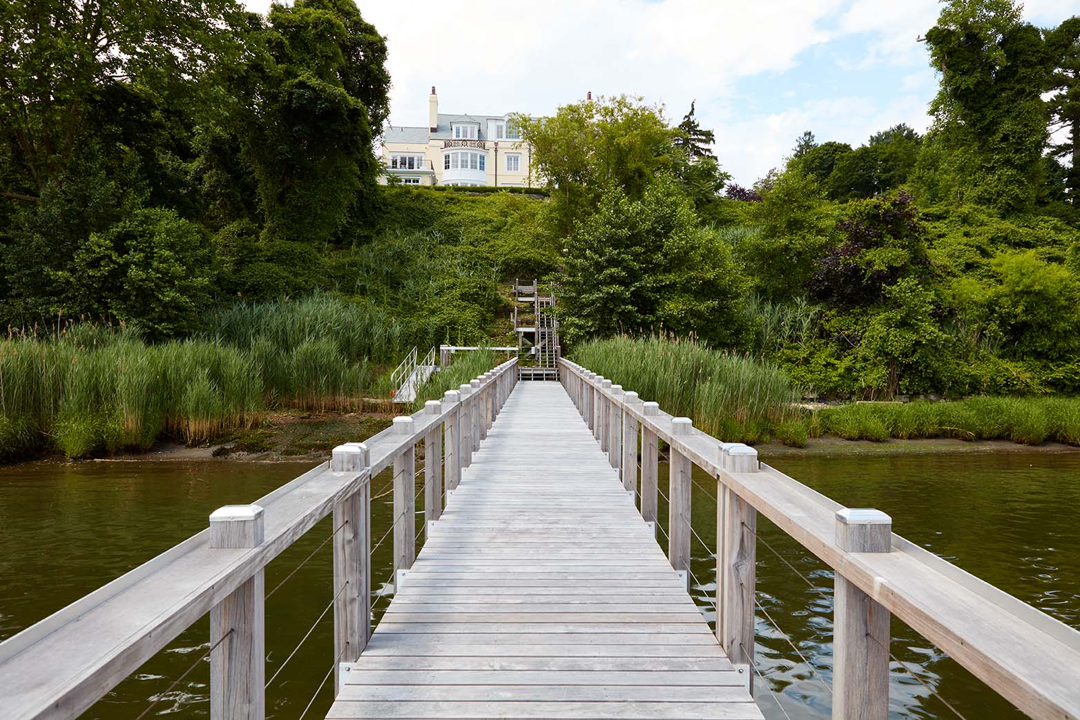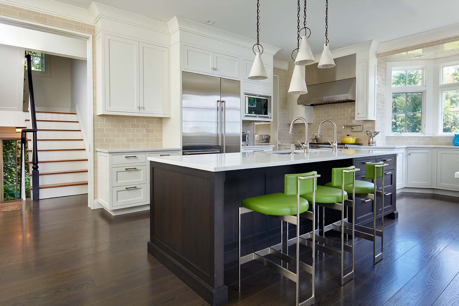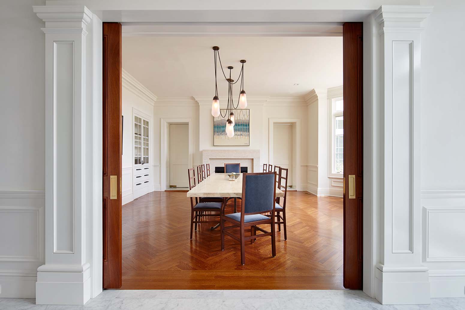 MZA converted Holly House, a 1915 riverfront residence in Middletown, NJ, into a cutting-edge contemporary haven. The homeowners wanted a home that better reflected their modern tastes yet continued to honor the historic charm of the house. MZA redesigned the kitchen for greater functionality, transformed the basement into a wellness and entertainment area, and redesigned the 1,500-square-foot master suite to include a sitting room, office, and roof deck with breathtaking views of the Navesink River. The most adventurous addition was a brand-new pier: a shiny, 110-foot-long design constructed from greenheart piles, aluminum framing, and IPE decking, 45 feet high from the water line to the house. This sleek new addition, plus a new breakfast porch and thoughtfully edited interiors, infused new life into the Holly House. Today, it's an elegant retreat that beautifully balances history and modern-day comfort and craftsmanship.