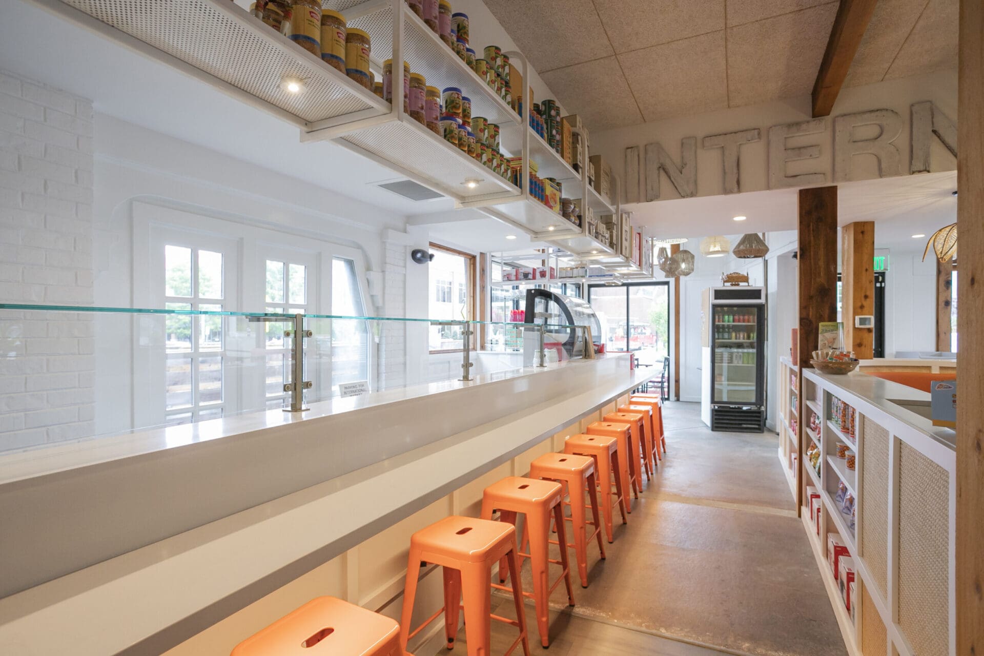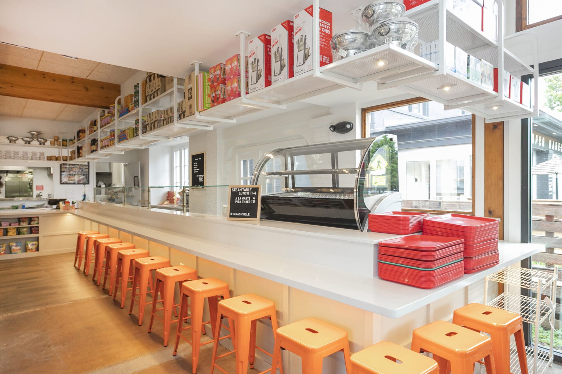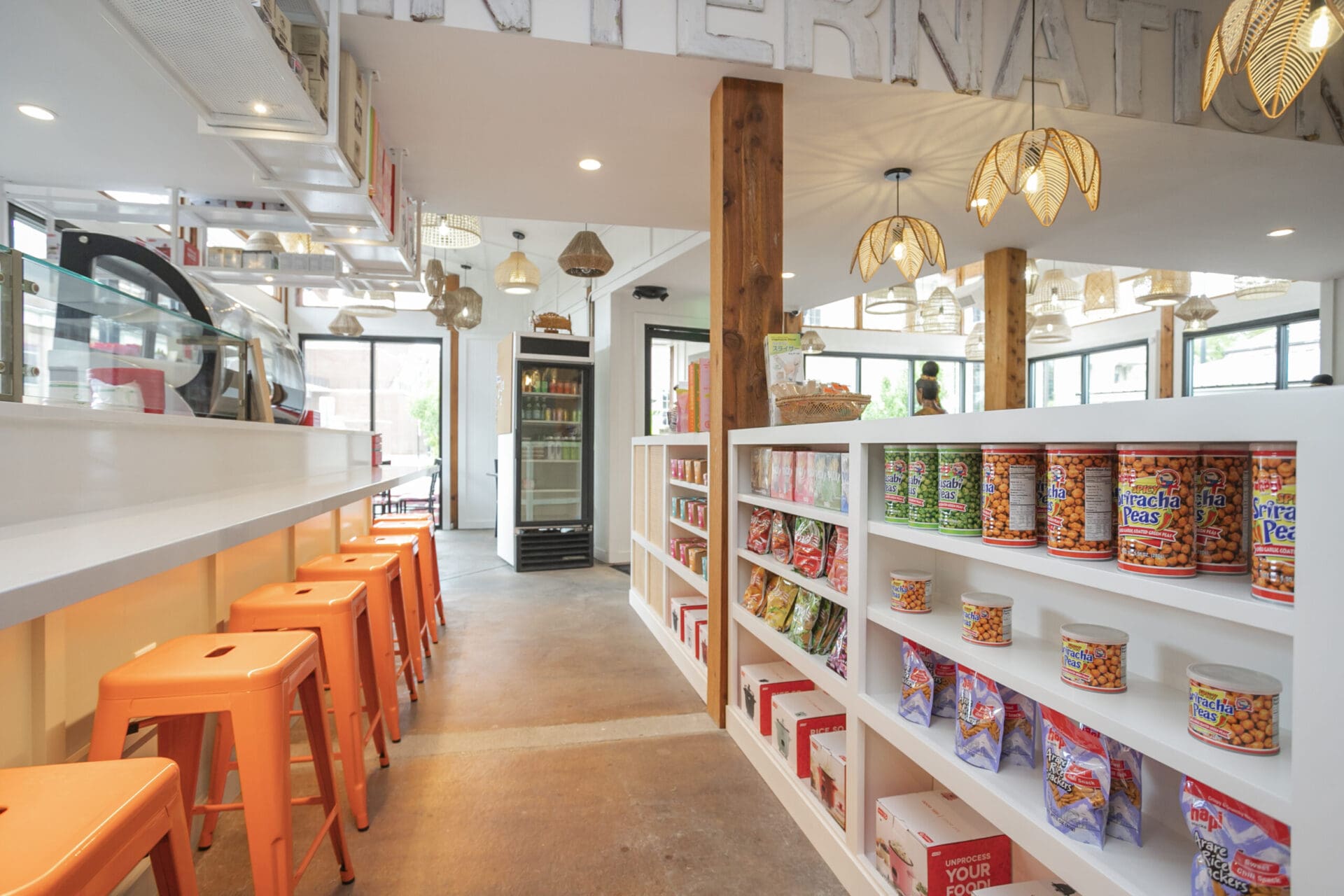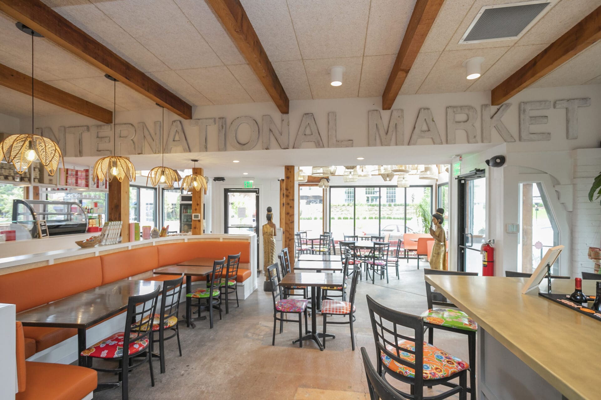 When Nashville's favorite International Market was pushed out of its longtime home on historic Belmont Boulevard after 45 years, Anna and Arnold Myint, the family who owned it, teamed up with MZA to reimagine their family's legacy across the street. Honoring the much-loved original and the need for a fresh start in the new space, MZA created a space that blends seamlessly between nostalgia and hip style. The original bright orange booths and outside signage provide cheerful nods to the past, while teak wood carved doors and graphic orange floor tile provide warmth and character. Strategically selected, the new, bright interior highlights the bright colors of the market's product displays. Now fondly known as IM2, the reborn restaurant and market continues to be a neighborhood institution for everyone who has supported this staple of Nashville’s culture for years.