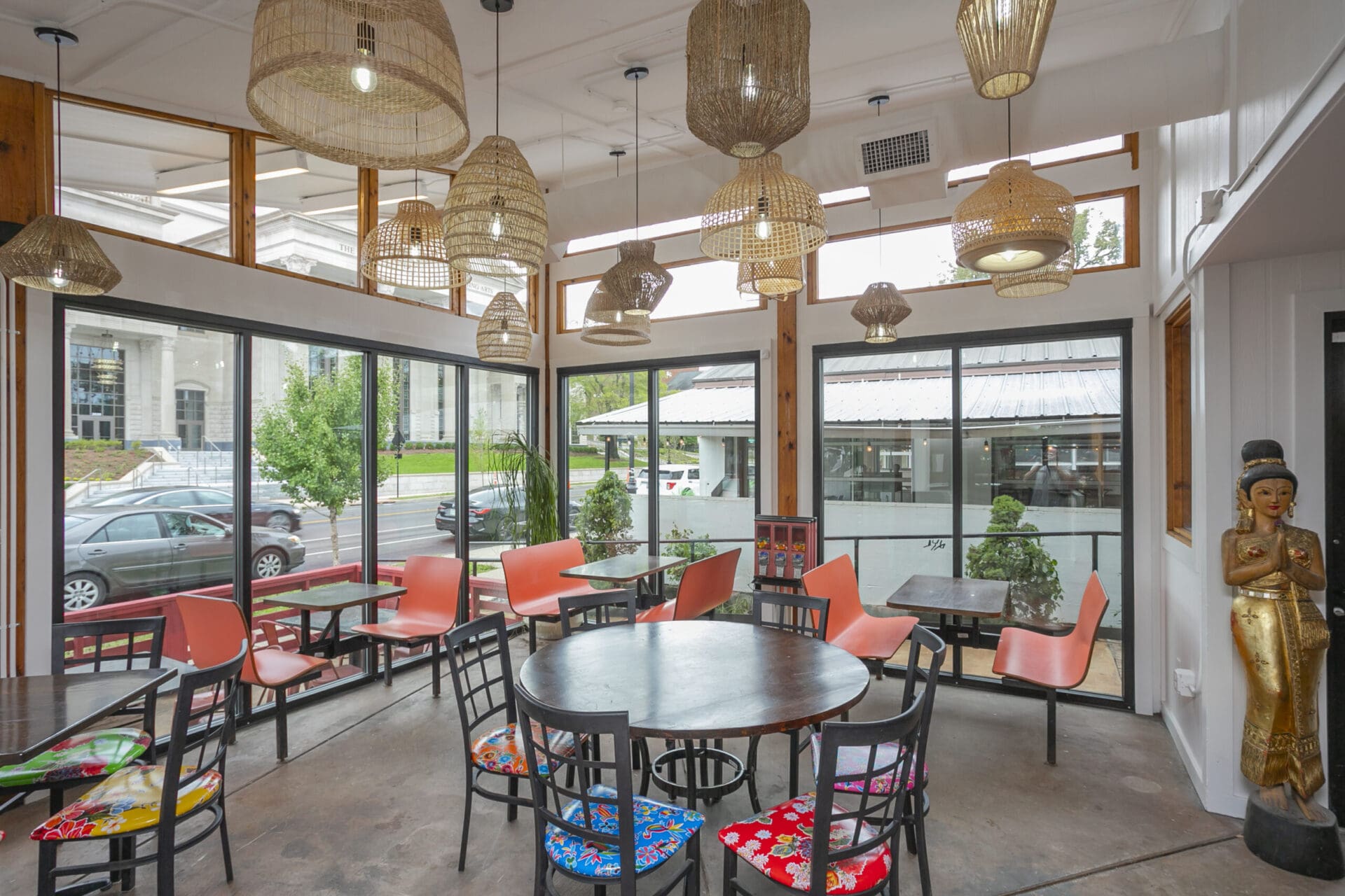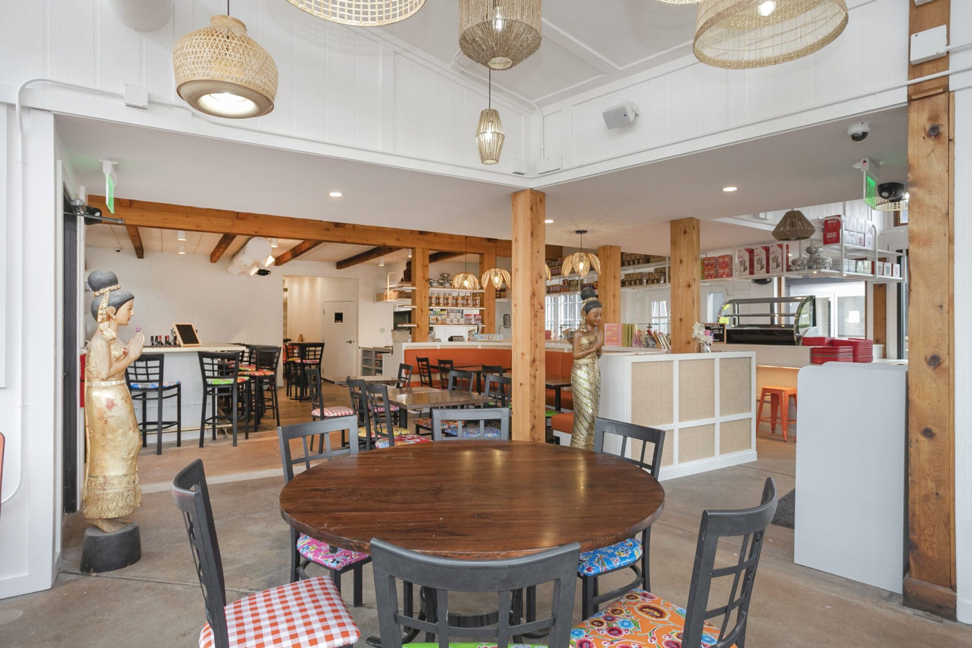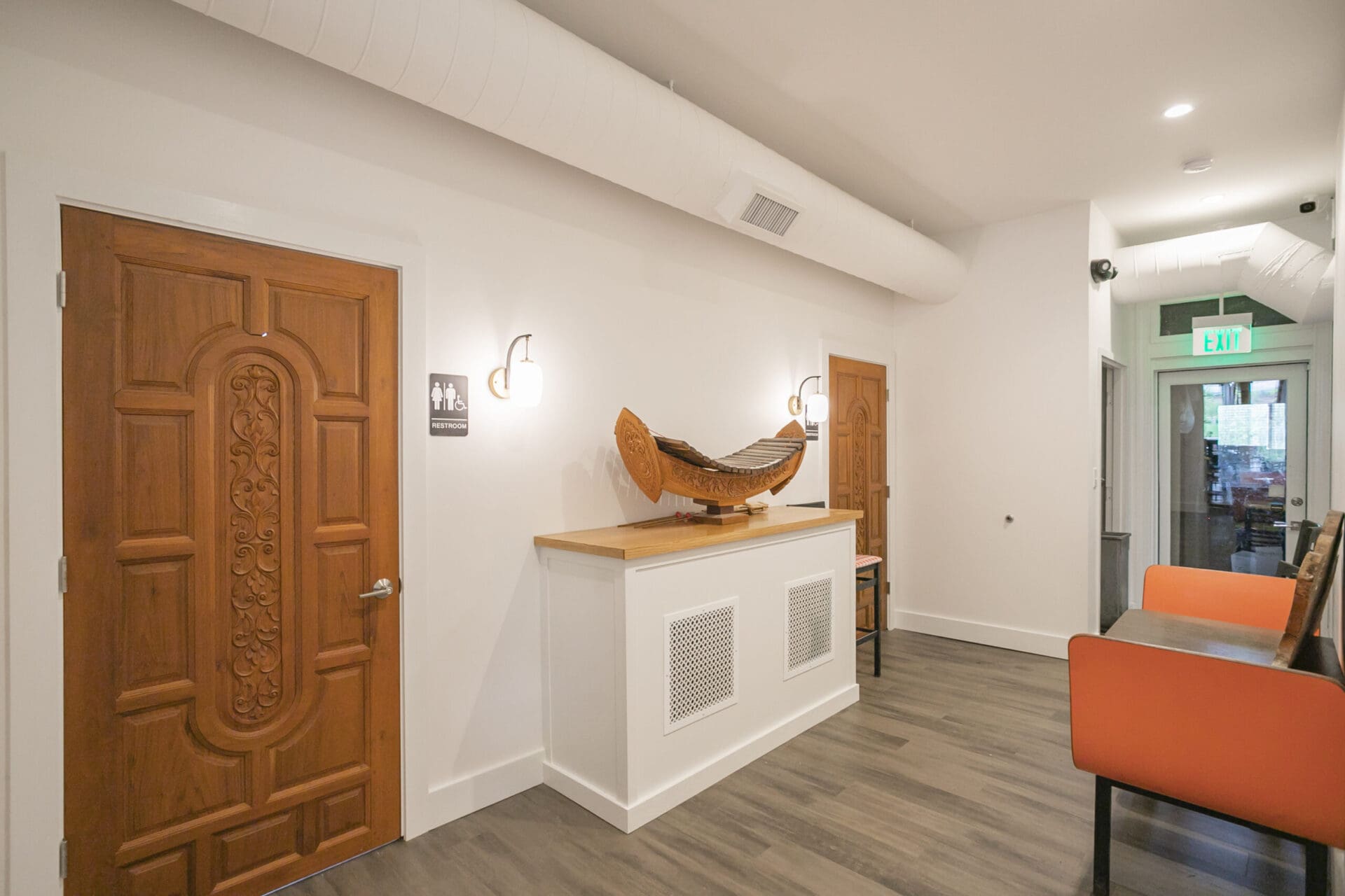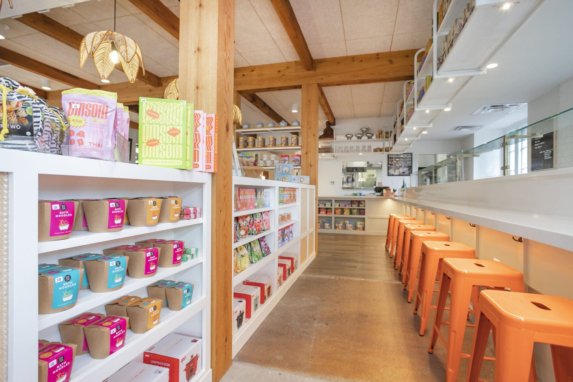 When Nashville's favorite International Market was pushed out of its longtime home on historic Belmont Boulevard after 45 years, Anna and Arnold Myint, the family who owned it, teamed up with MZA to reimagine their family's legacy across the street. Honoring the much-loved original and the need for a fresh start in the new space, MZA created a space that blends seamlessly between nostalgia and hip style. The original bright orange booths and outside signage provide cheerful nods to the past, while teak wood carved doors and graphic orange floor tile provide warmth and character. Strategically selected, the new, bright interior highlights the bright colors of the market's product displays. Now fondly known as IM2, the reborn restaurant and market continues to be a neighborhood institution for everyone who has supported this staple of Nashville’s culture for years.