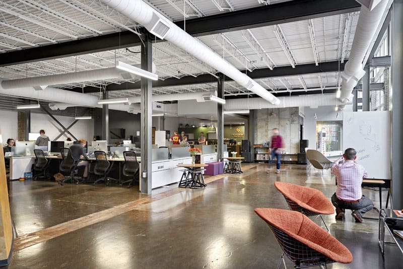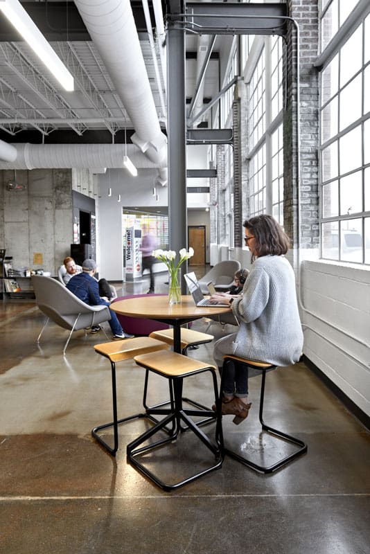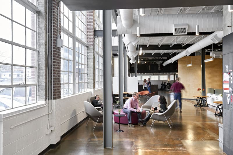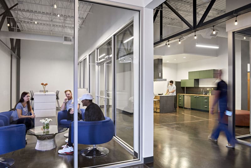 MZA repurposed a historic industrial printing facility in Nashville as a sanctuary for creative thinkers and entrepreneurs. Named the Ink Building, the 9,400-square-foot building was supplemented by two partial floors, increasing its space by over two times and offering a rooftop deck with views of the city skyline. MZA retained the original steel windows, high ceilings, and structural trusses, unifying old and new in perfect harmony. The space is now occupied by FLO {thinkery} and a community of music, tech, and creative companies. Shared lounges, espresso bars, and meeting rooms promote collaboration among companies, creating a dynamic, flexible work environment. Where there was once a utilitarian warehouse, today is a productive beehive of creative energy and a force for neighborhood growth.