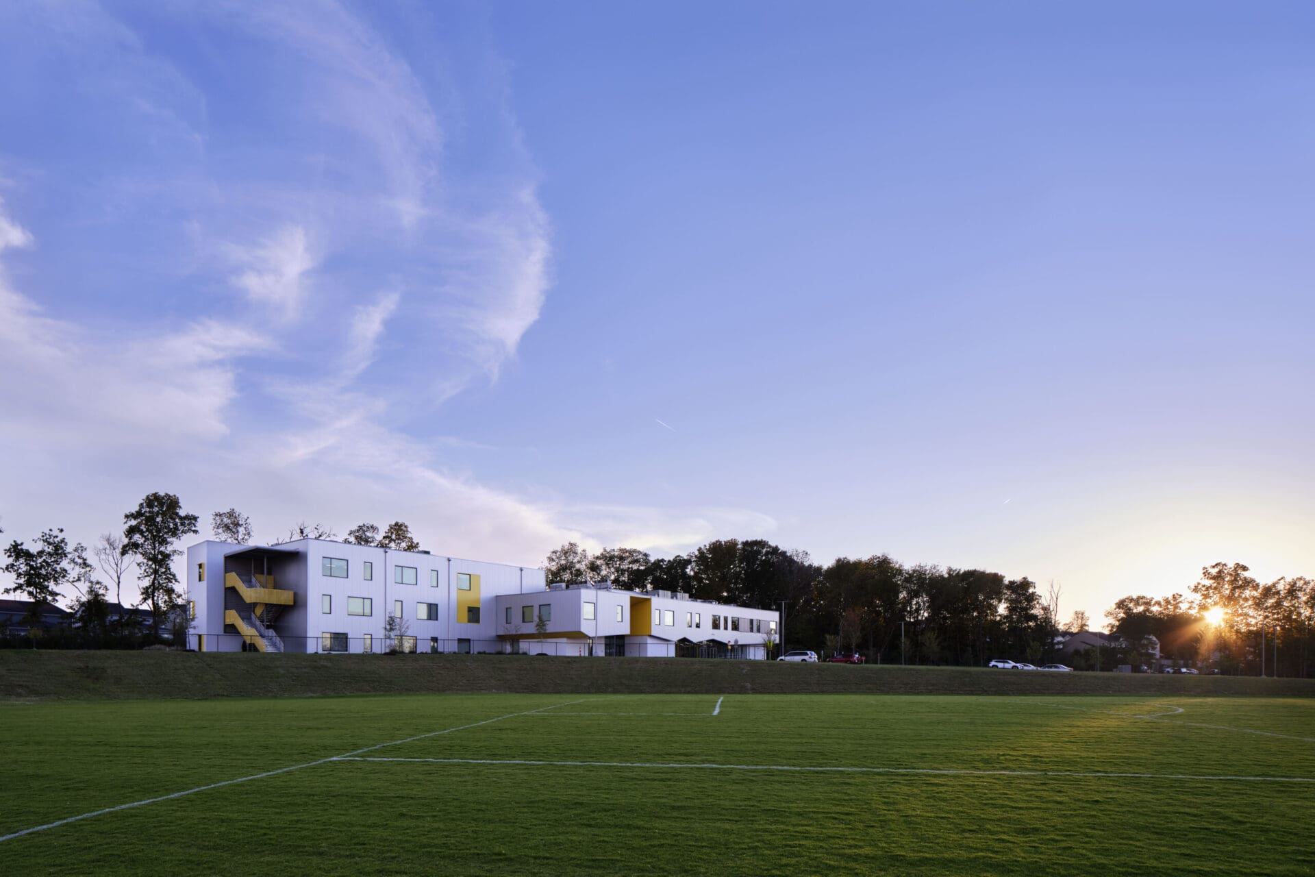 KIPP Antioch College Prep Middle is the second school to be built on a site master-planned by MZA with Barge Cauthen. With more than 48,000 SF over three stories, the building provides an engaging educational environment with light filled gathering spaces for approximately 500 fifth through eighth graders. Early in the master planning process for the campus, the design team identified a theme that would guide the dialogue between the two facilities for which the campus was planned: KIPP Antioch Elementary “The Barn” would explore forms familiar to agricultural buildings. This project, KIPP Antioch Middle “The Boat” would focus on the uplifting and freeing sensation that, like a seafaring vessel, an exceptional educational can provide.