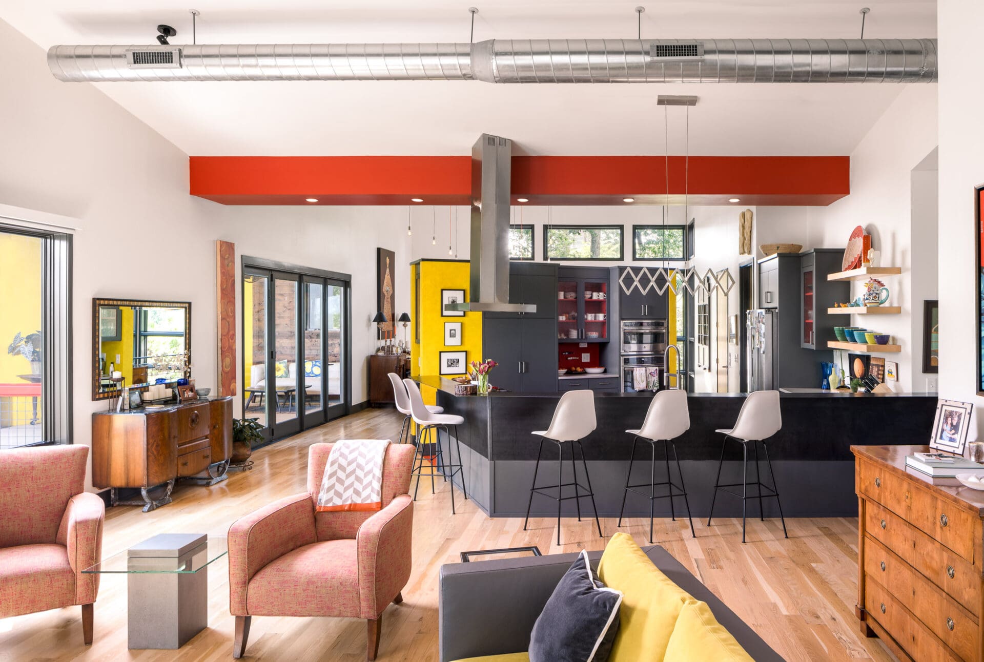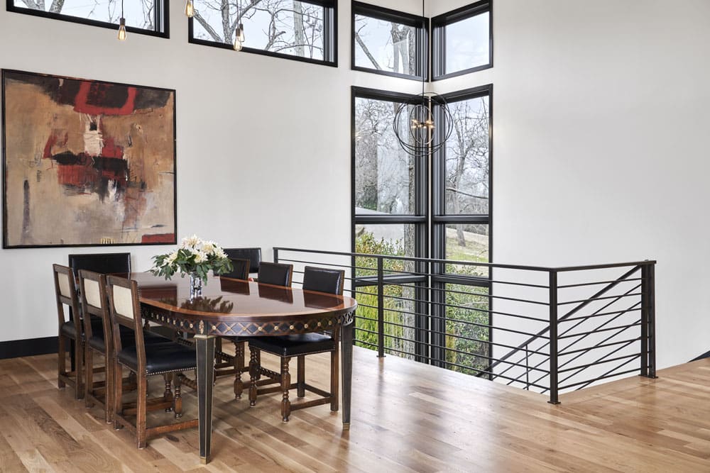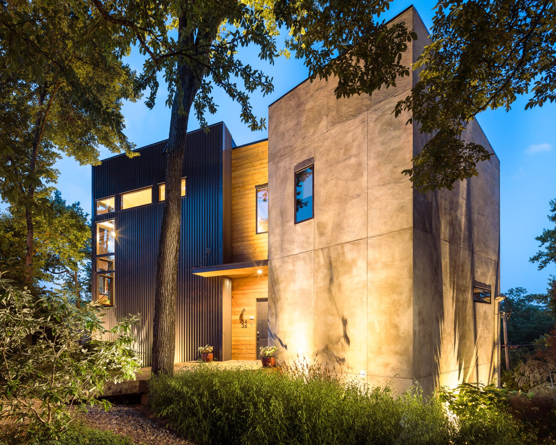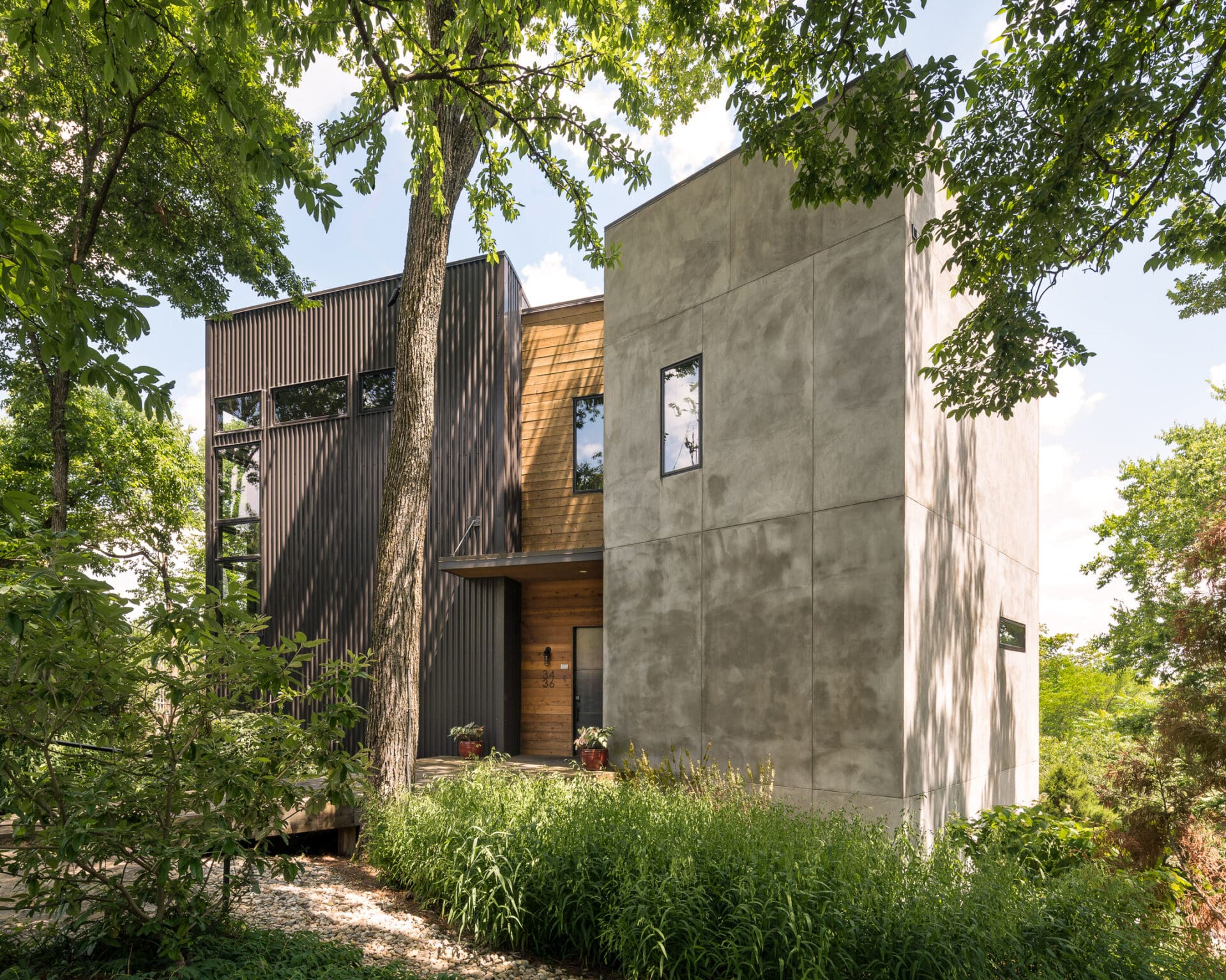 For two longtime friends who share homes, MZA designed this unique Nashville residence as a haven of comfort, privacy, and shared experience. The challenge was to preserve the site's existing stone walls and mature trees and to create individual personal spaces within an integrated home. MZA conceived of two distinct volumes, a primary house and separate guest suite, linked by a central outdoor deck greeting individuals the moment they pass through the front door. The arrangement is evocative of a Paris courtyard, and arrival is a party. A screened porch spans upstairs, connecting the main house to a private office, echoing the split below. Each decision respects the site but also invites connection and serenity. The home is both rooted and novel, intimate and adaptable, and ultimately very personal.