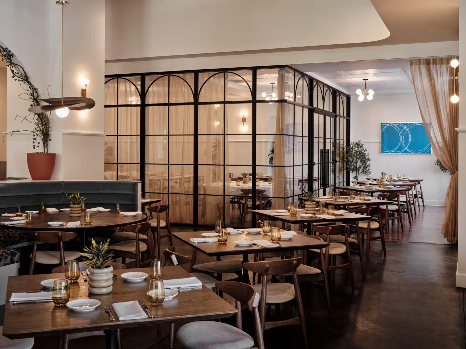 MZA developed Luogo, a second-story Italian eatery in Nashville's vibrant Gulch neighborhood. For Luogo, or "The Place" in Italian, the client envisioned a comfortable but elegant venue that blended old-world charm with contemporary flair. MZA managed to compress a tight schedule and meticulous detail control while working together with the owner and general contractor. From day one, MZA aimed for a timely and budget-friendly renovation in line with the client’s vision. Thoughtfully redesigned interiors included relocating the bar, opening the kitchen, and enhancing visibility to the private dining space. Unique banquettes, booths, tables, and fine finishes enhance the dining experience, commemorating the authenticity of Luogo's iconic Italian cuisine. The result is a warm yet elegant space that effectively combines historic culinary traditions with modern design to create an instant favorite spot for memorable meals.