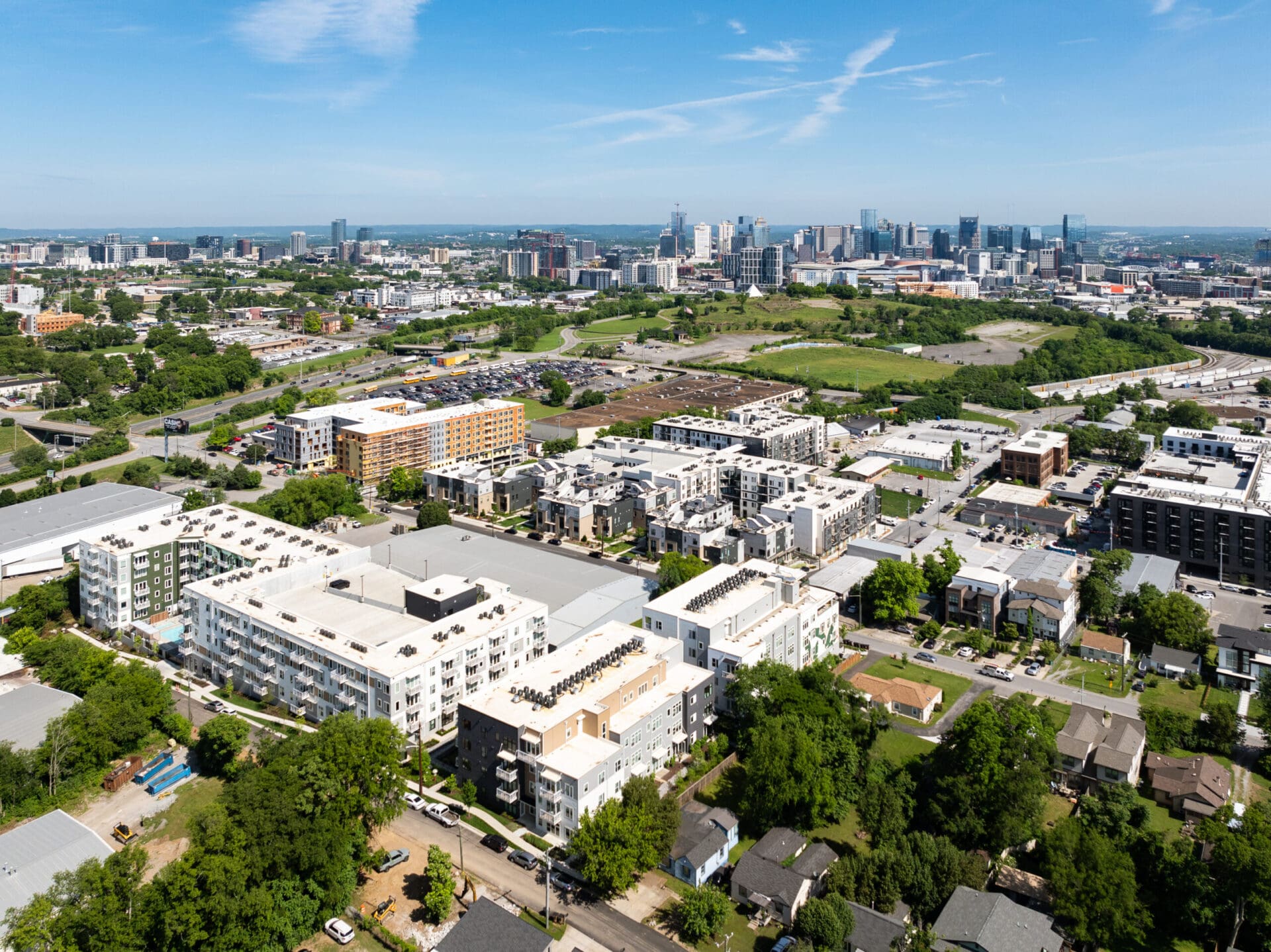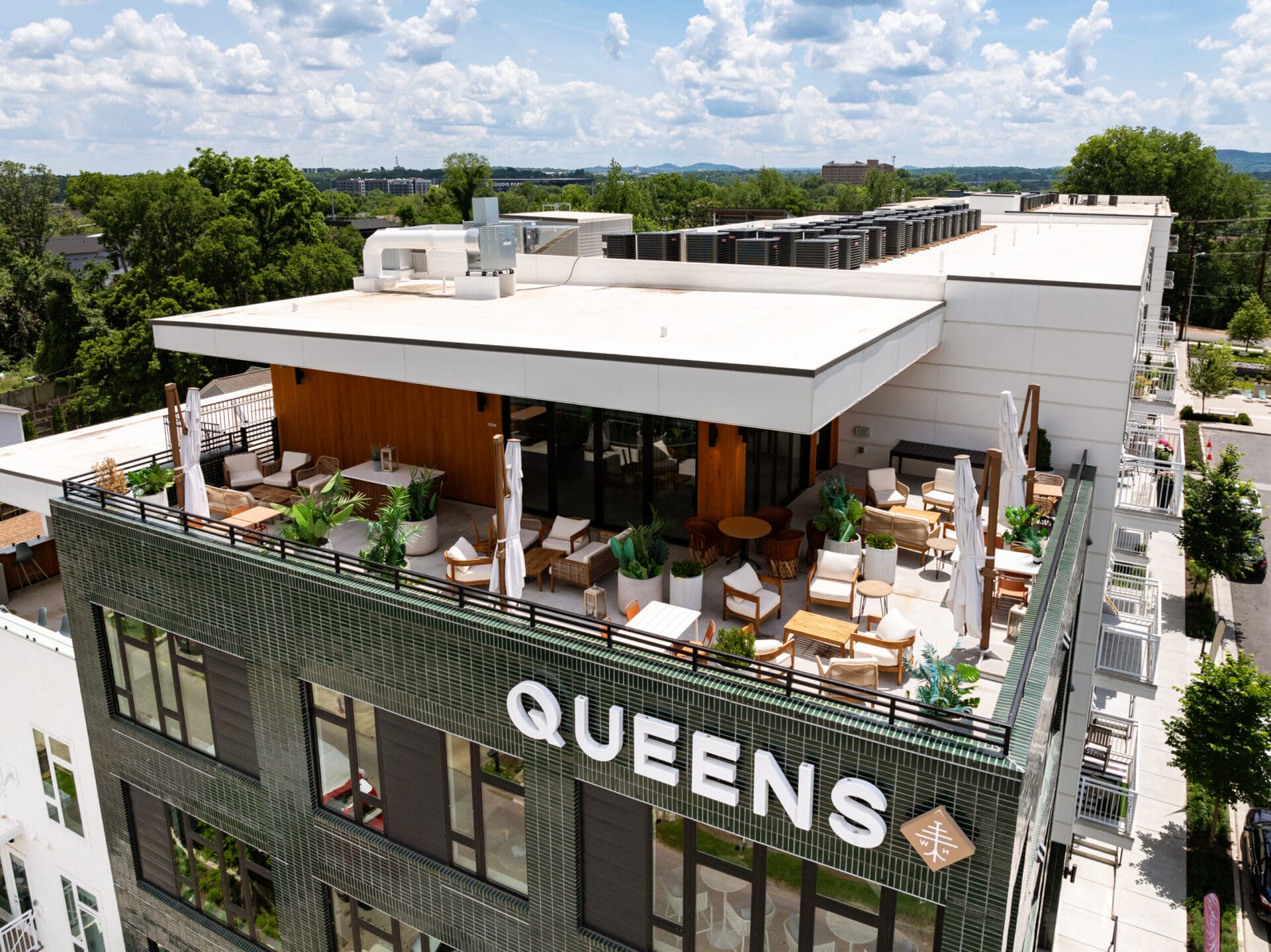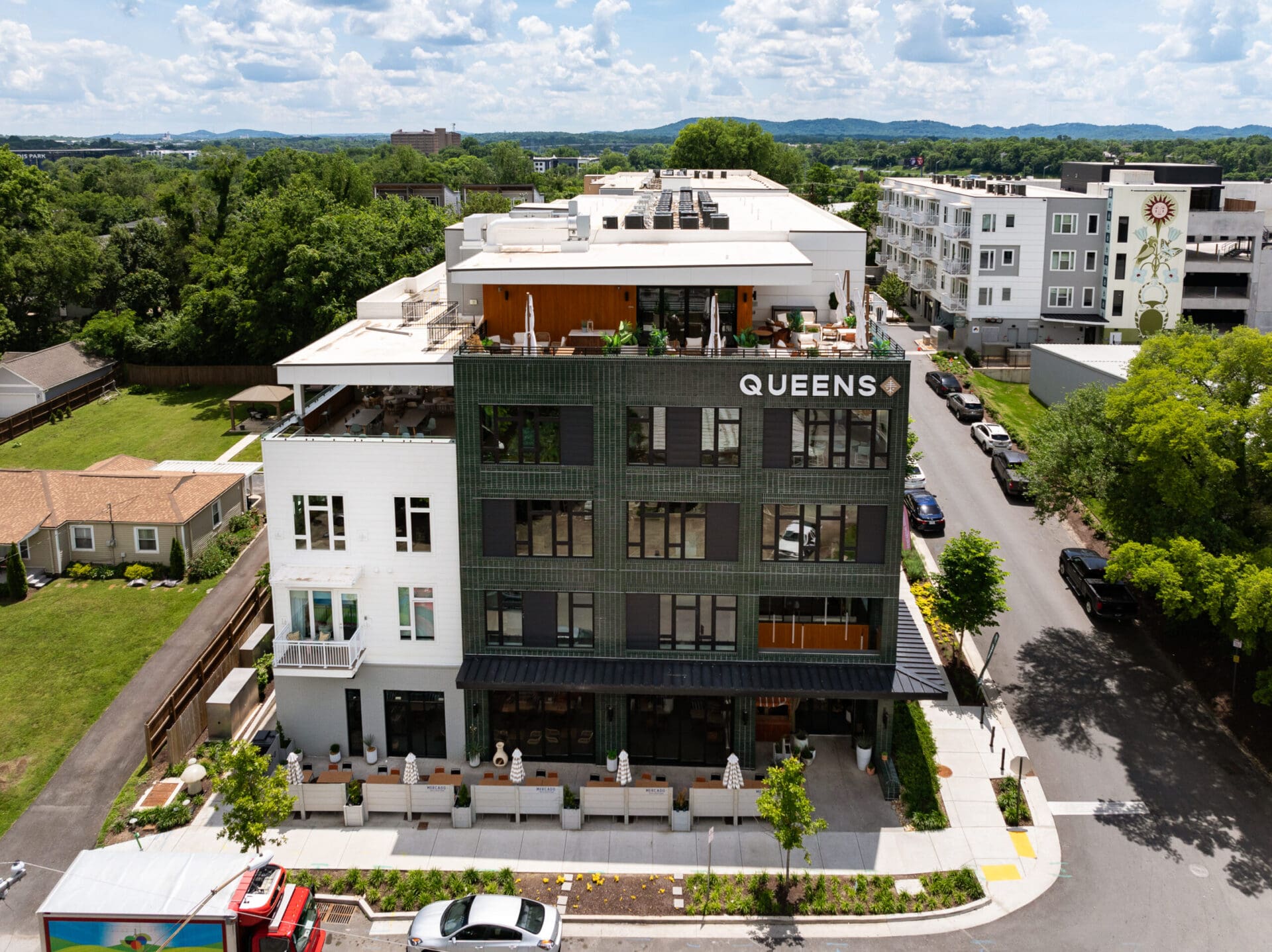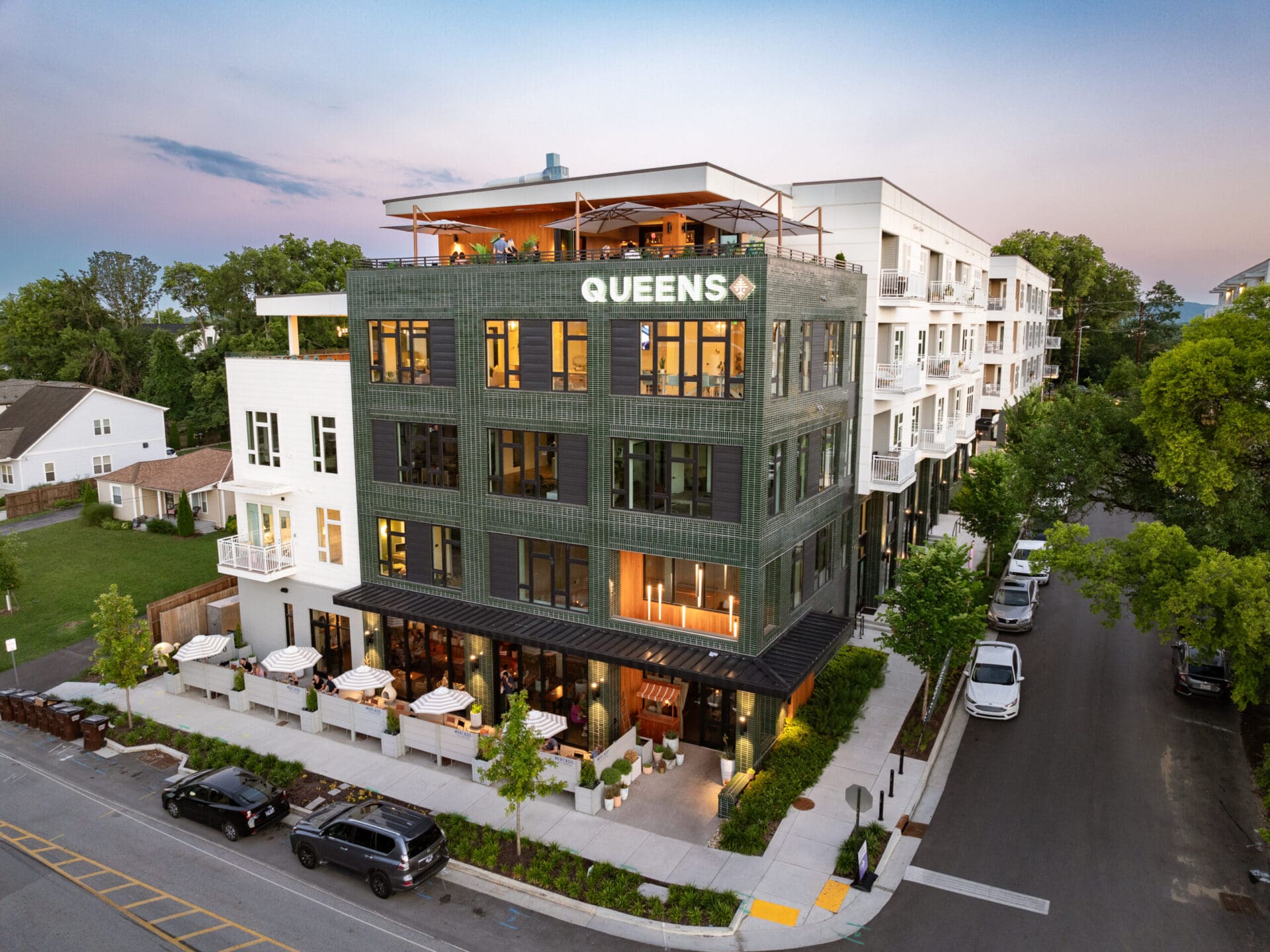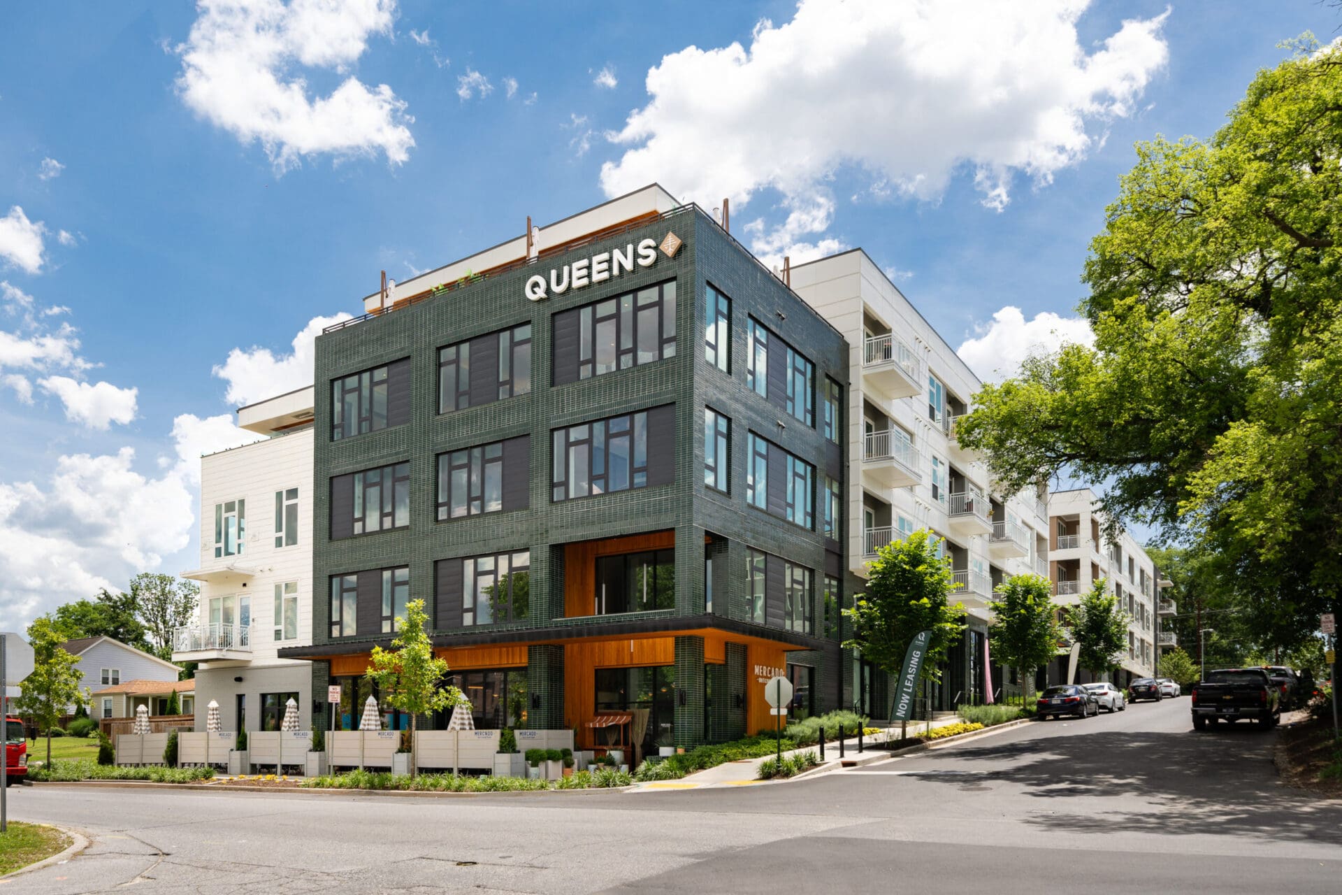 In collaboration with EOA Architects and Hawkins Partners, MZA envisioned Queens to bring new energy and new neighbors to Wedgewood-Houston. Just a stone's throw from MZA's own office, the mixed-use project consists of 220 apartments, eleven live/workspaces, and a community restaurant with rooftop bar at Hagan and Hamilton. MZA collaborated with the SNAP neighborhood association and Councilmember Colby Sledge to make sure the project fits in the creative, residential DNA of the block. The design also transforms a dead-end section of Moore Avenue into a public green, where long-time residents and newcomers can greet one another. Queens intertwines housing, local commerce, and outdoor space in a way that unifies the neighborhood and respects its heritage.
