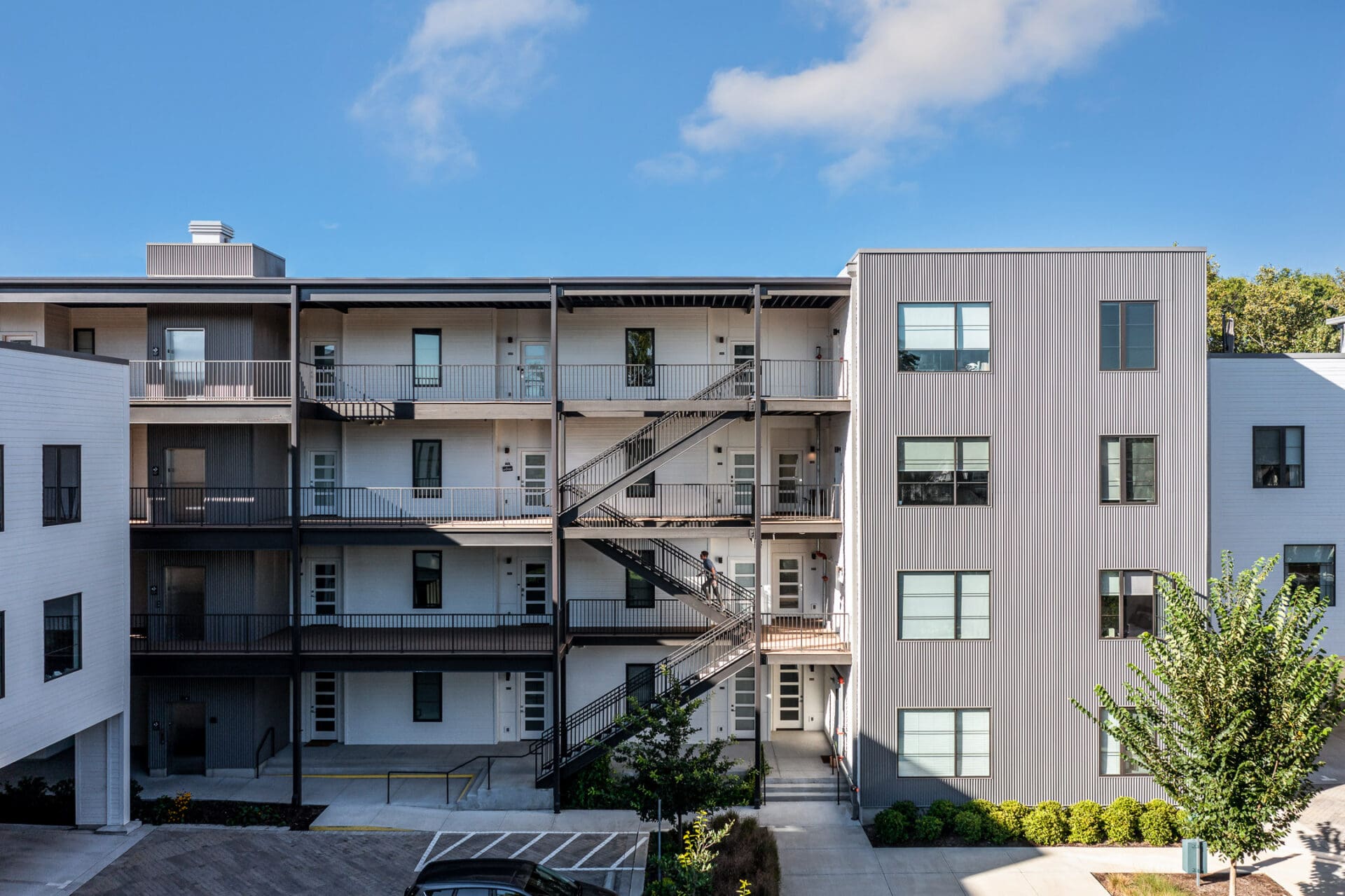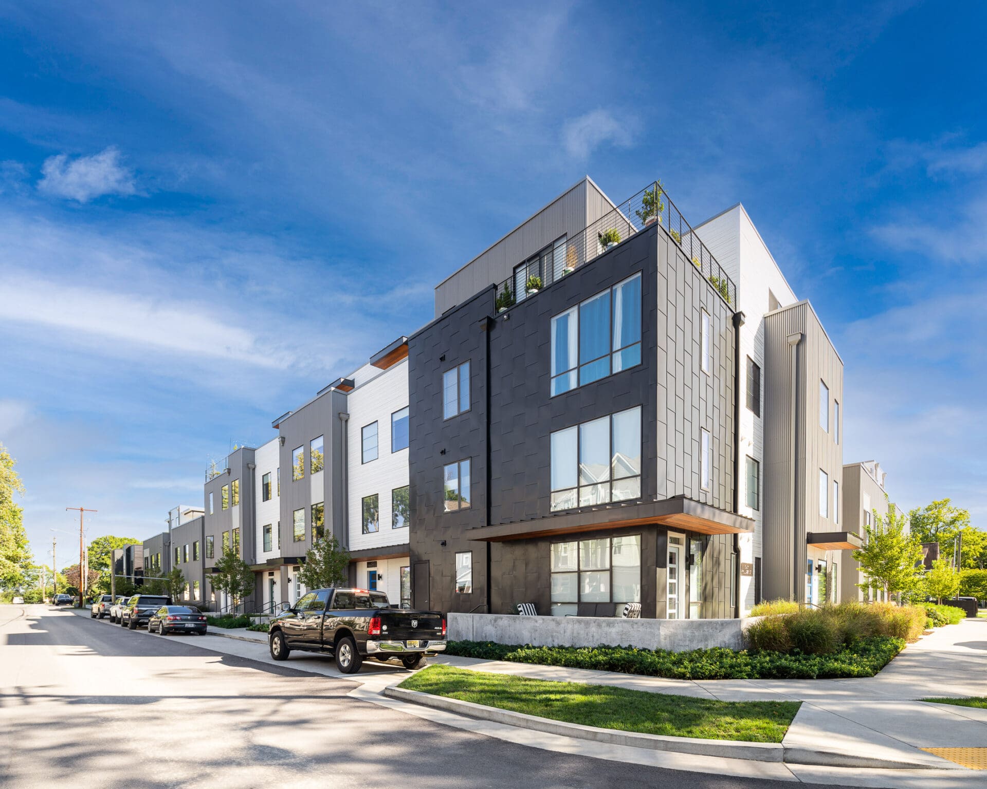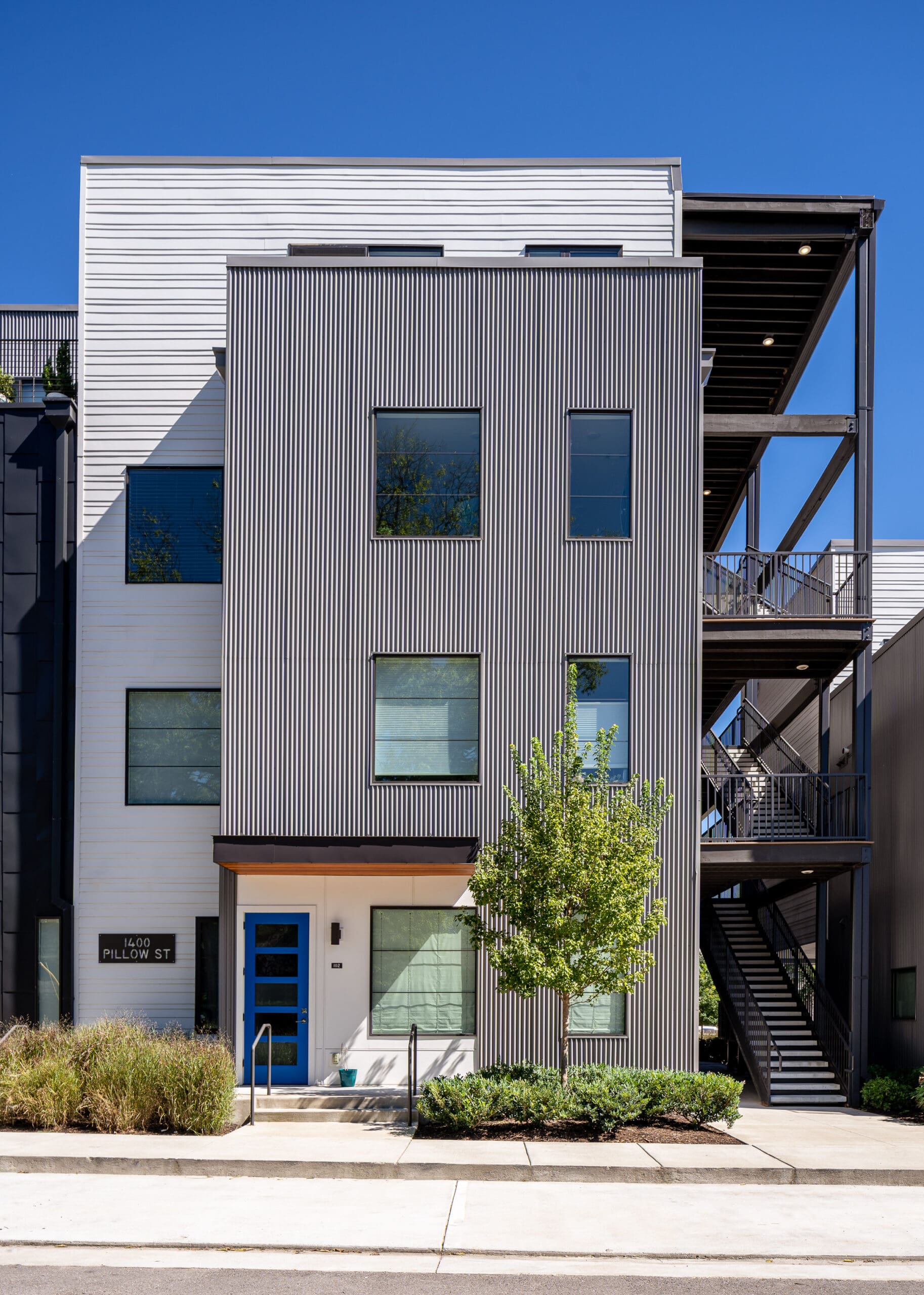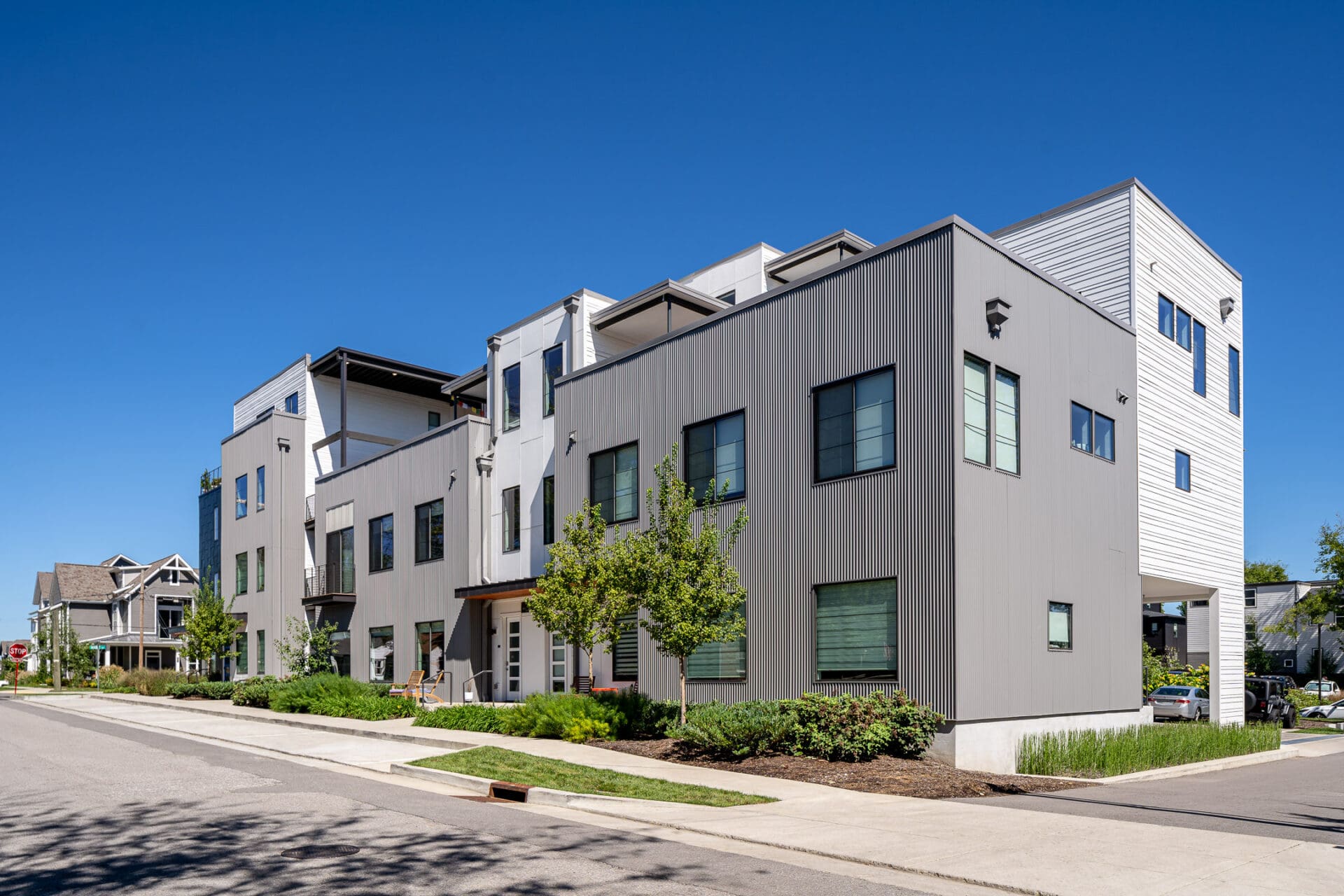 Segment is a 34-unit residential complex in Nashville's Wedgewood-Houston neighborhood by MZA for Core Development, located on a corner lot and aimed to infill with density without sacrificing human-scale street presence. The tension was how to achieve balance between privacy and city vibrancy in this creative, energy-charged neighborhood. MZA devised a stepped, in-and-out exterior that provides space to catch one's breath along the sidewalk and draws light and air into the homes. Townhomes sit as corner units with roof decks and concealed parking spaces. Flats recall the industrial heritage of the surrounding neighborhood with metal siding and commercial windows looking out over Pillow Street. Within, each home features open floor plans and abundant daylight. The project was awarded a 2021 Land Institute Excellence in Development Award and introduces a thoughtfully scaled, pedestrian-friendly presence to a growing neighborhood.