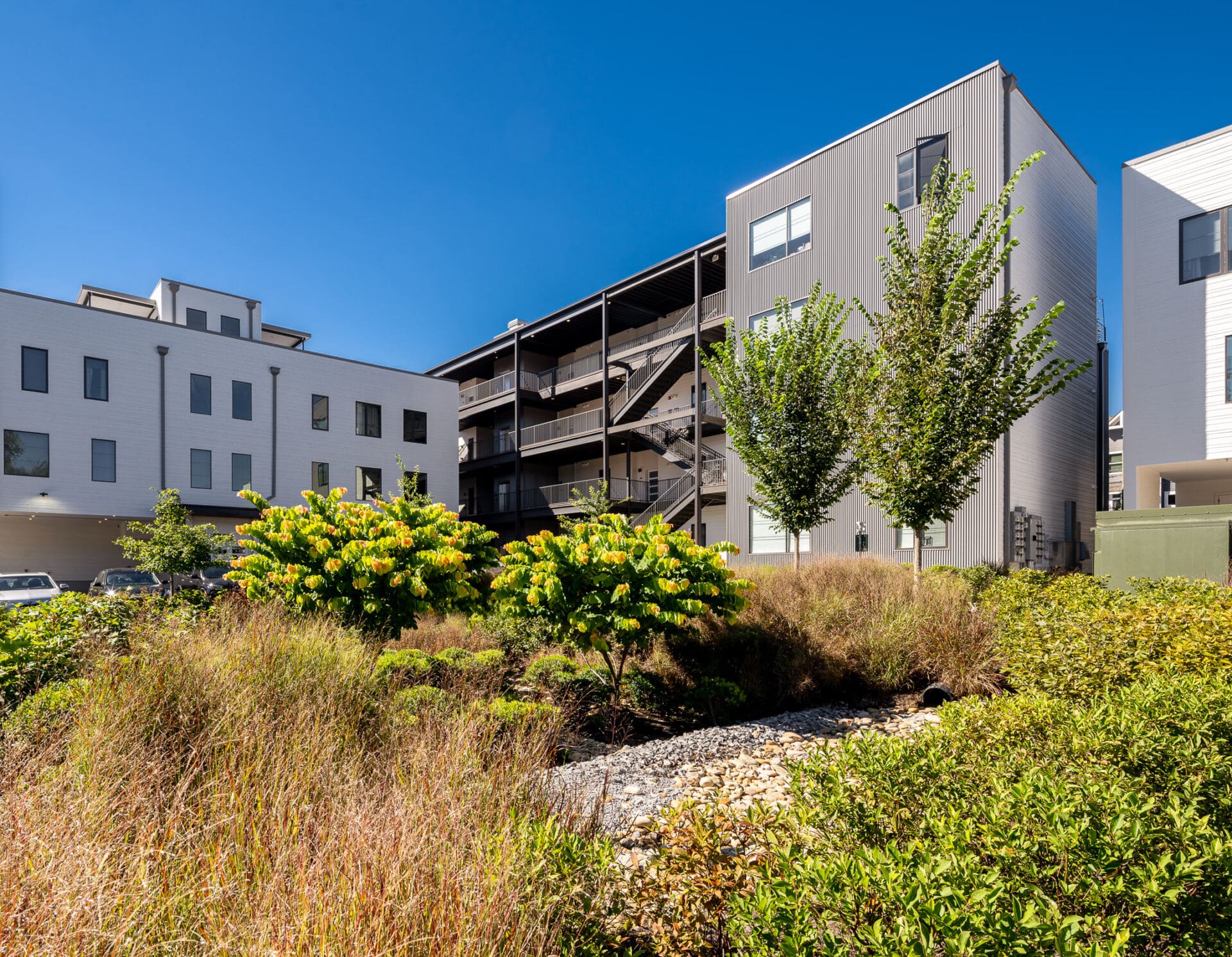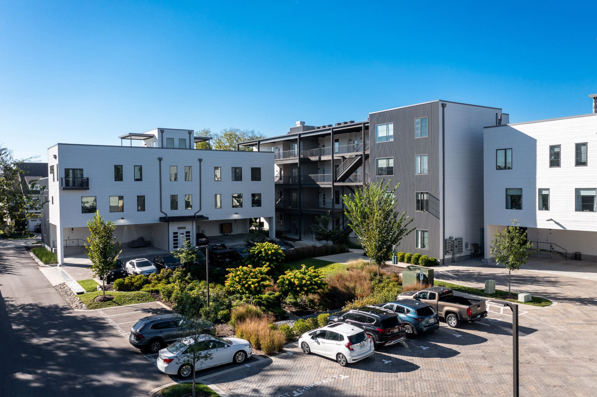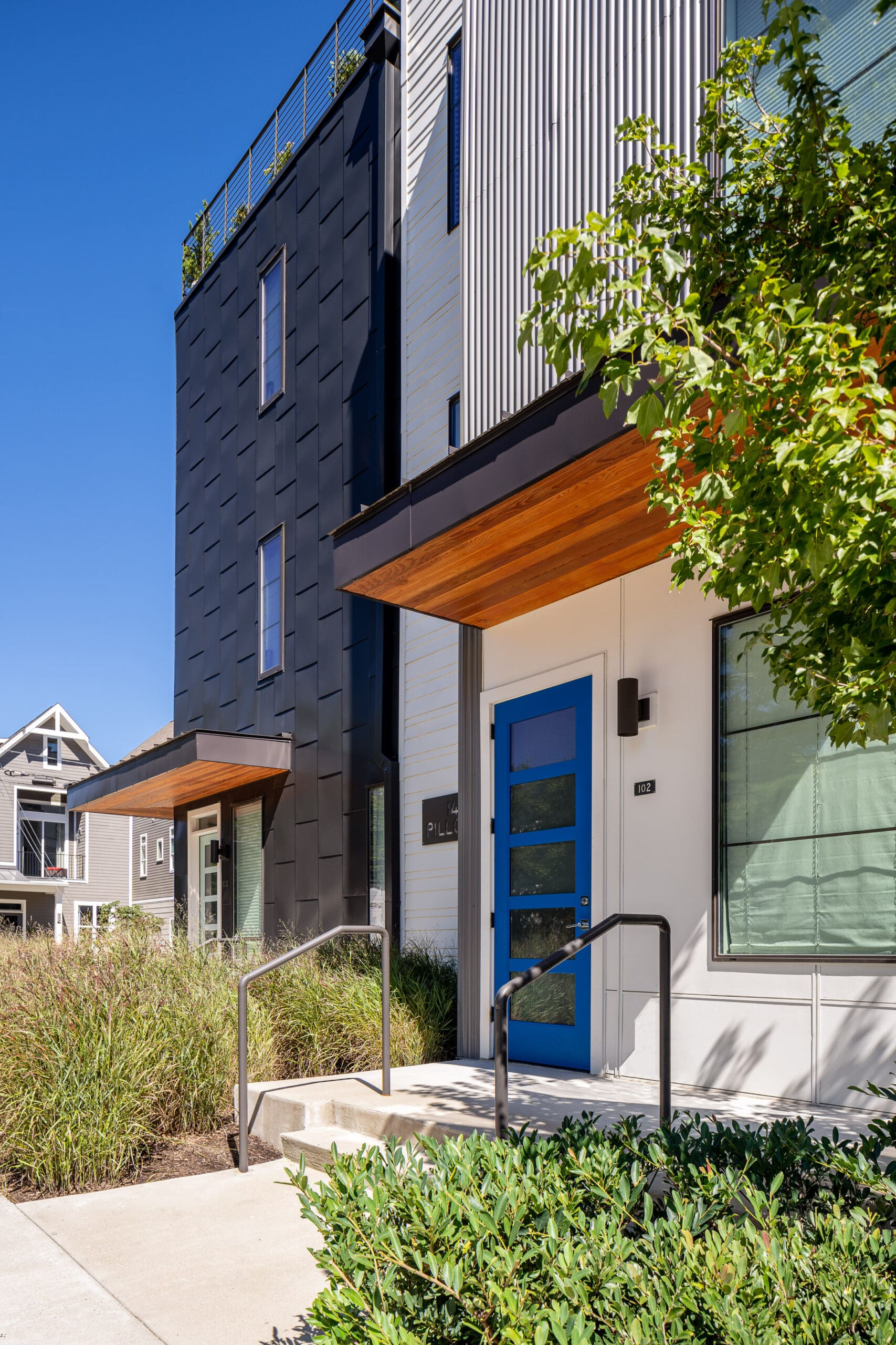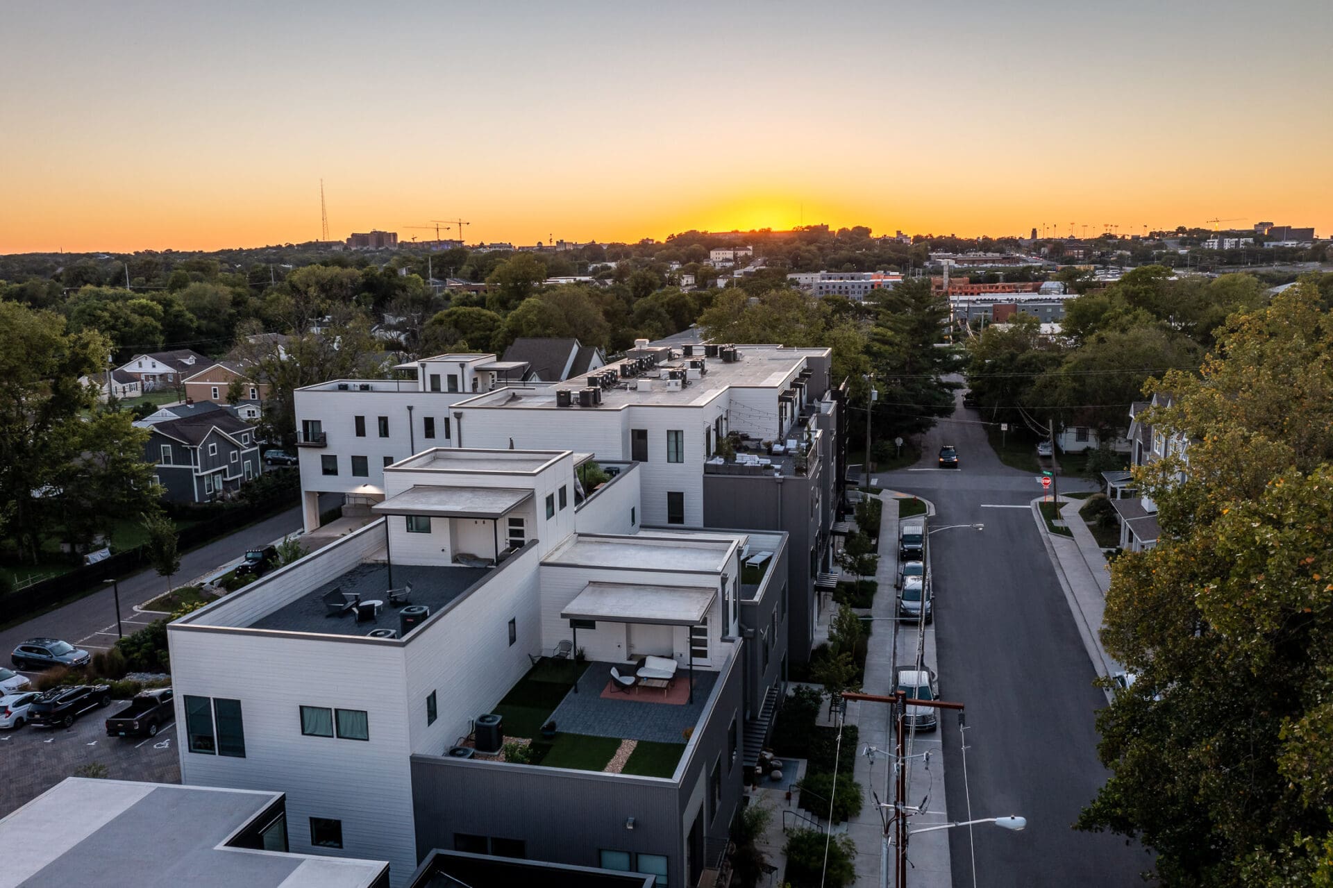 Segment is a 34-unit residential complex in Nashville's Wedgewood-Houston neighborhood by MZA for Core Development, located on a corner lot and aimed to infill with density without sacrificing human-scale street presence. The tension was how to achieve balance between privacy and city vibrancy in this creative, energy-charged neighborhood. MZA devised a stepped, in-and-out exterior that provides space to catch one's breath along the sidewalk and draws light and air into the homes. Townhomes sit as corner units with roof decks and concealed parking spaces. Flats recall the industrial heritage of the surrounding neighborhood with metal siding and commercial windows looking out over Pillow Street. Within, each home features open floor plans and abundant daylight. The project was awarded a 2021 Land Institute Excellence in Development Award and introduces a thoughtfully scaled, pedestrian-friendly presence to a growing neighborhood.