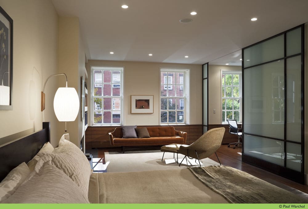 MZA was brought in to salvage a part of the history of this 1851 townhouse and to make fundamental changes to its configuration, adapting it to the clients' modern lifestyle. The structure was purchased as a 3-family residential building and converted to single-family use during the wall-to-wall, cellar to roof gut renovation. The property is under the NYC Landmarks Preservation Commission's jurisdiction and, therefore, limited modifications were permitted to its primary facade. The rear facade of the building though had been modified several times over the house's history and retained little of its original context. In the 1920s, a rooftop penthouse had been added onto the original 4 story building which, rumor has it, served as a speakeasy of sorts during the prohibition.
