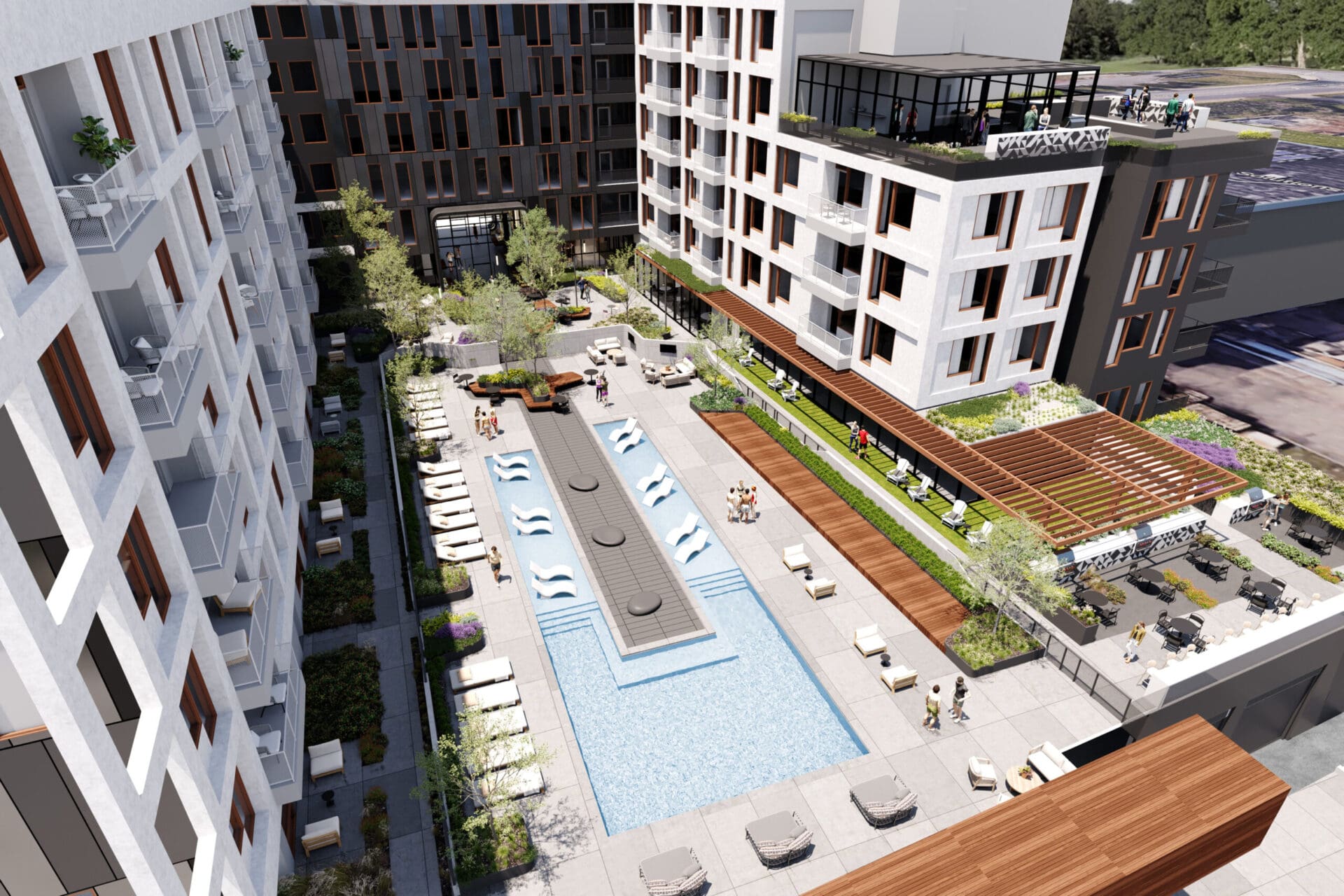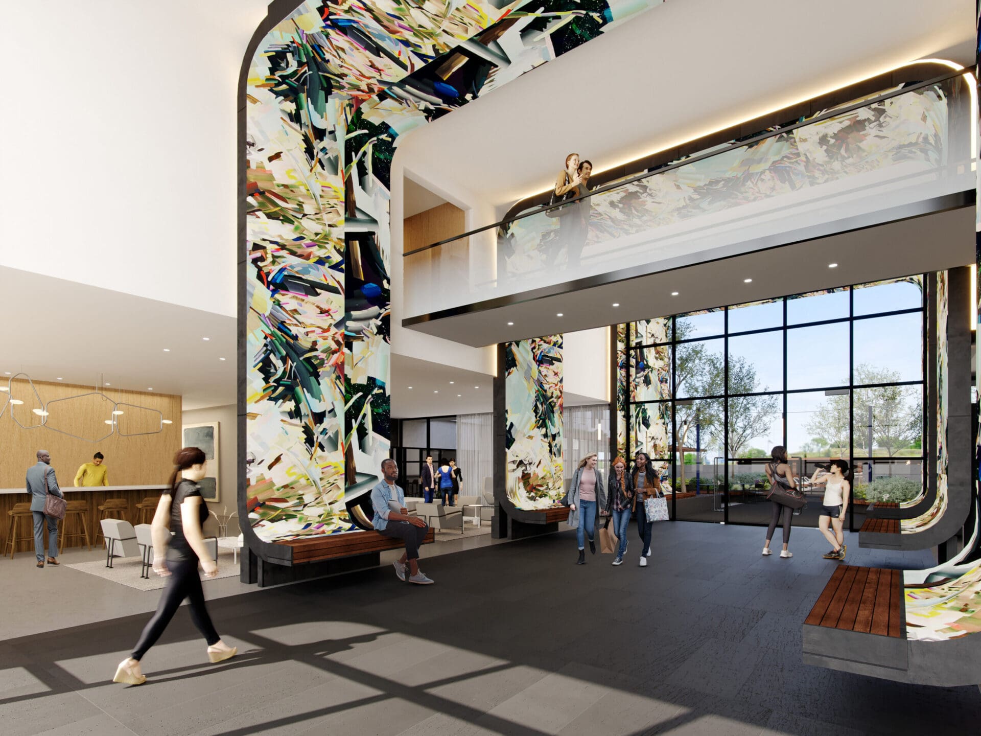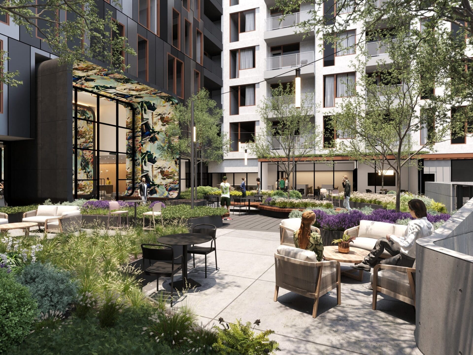 Westerly House amplifies Standard Assembly's sister hotel's creative energy to a whole new level with a twist: shared living areas and expansive coworking space. Situated between 8th Avenue and Wedgewood-Houston, the development has 242 dwelling units over a two-story podium. MZA, in association with EOA, designed the structure to highlight the industrial past of the district while incorporating higher level warmth using stucco, wood, and metal finishes. The double-height breezeway greets residents and visitors through a series of richly layered public spaces to a private central courtyard. Terrazzo floors, sweeping murals, and rich wood finishes within create a sophisticated but not pretentious environment. The challenge brought together the scale of a big multifamily complex with a sense of human-scale design. Westerly House accomplishes this by creating a seamless experience that compromises functionality, style, and community interaction.